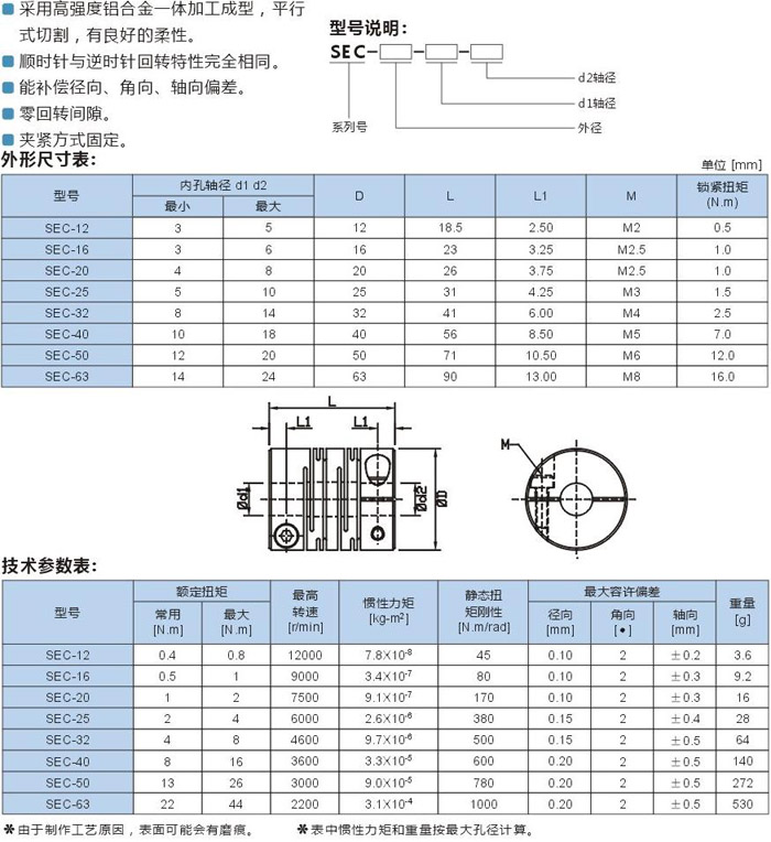 ◎弹性(平行)联轴器特点: